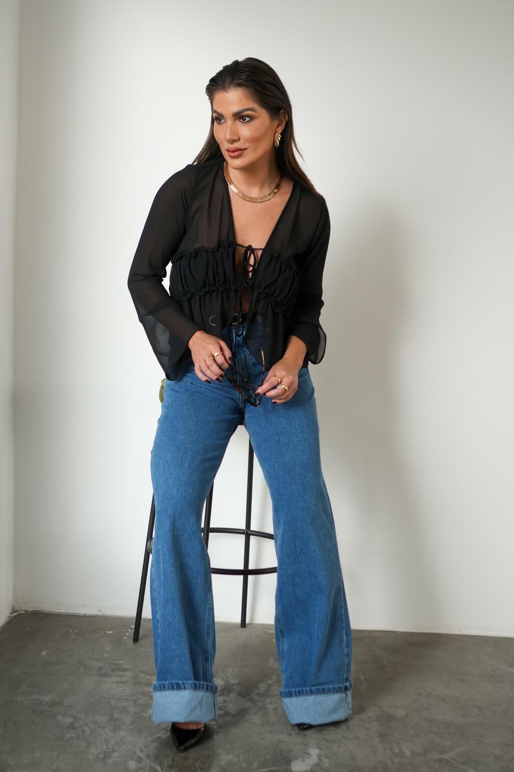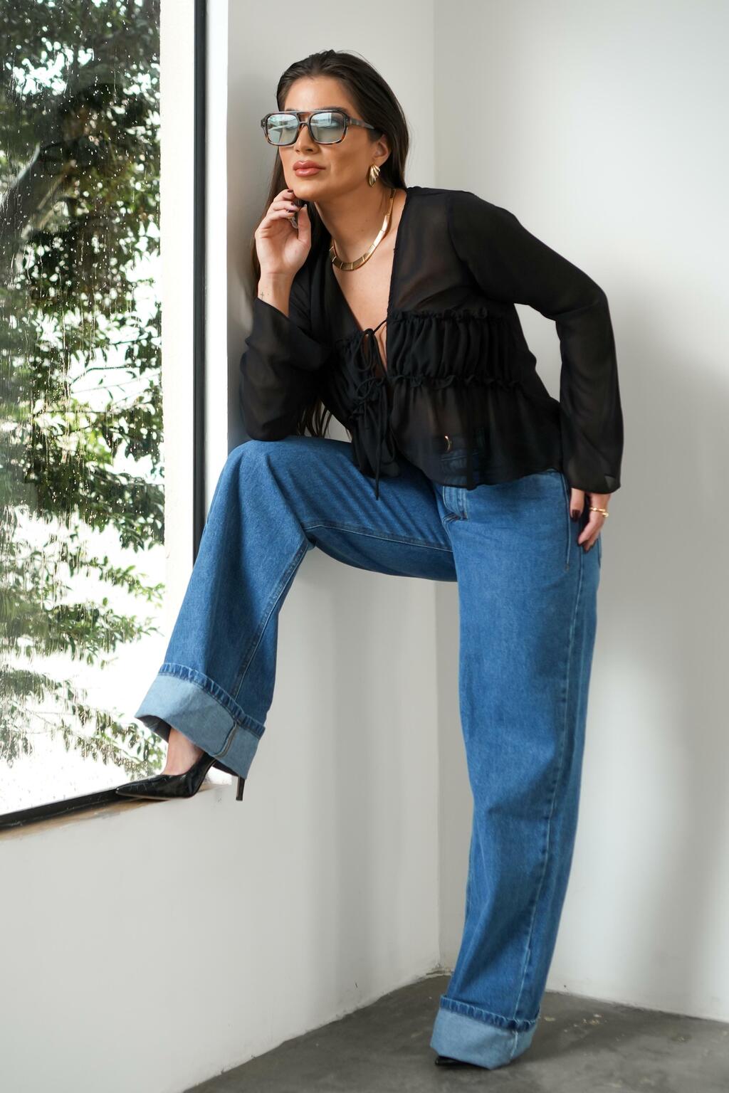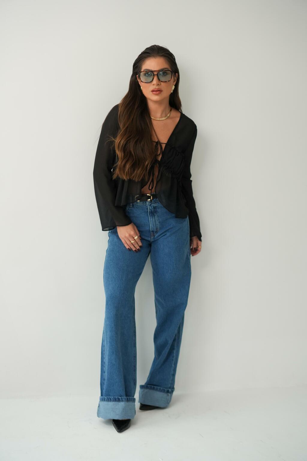 Composição de Qualidade Confeccionada em 100% algodão, com forro dos bolsos em 68% algodão e 32% poliéster, proporciona um toque suave e respirável. Eleve seu visual e sinta-se confiante com a Calça Wide Leg Andréia!
