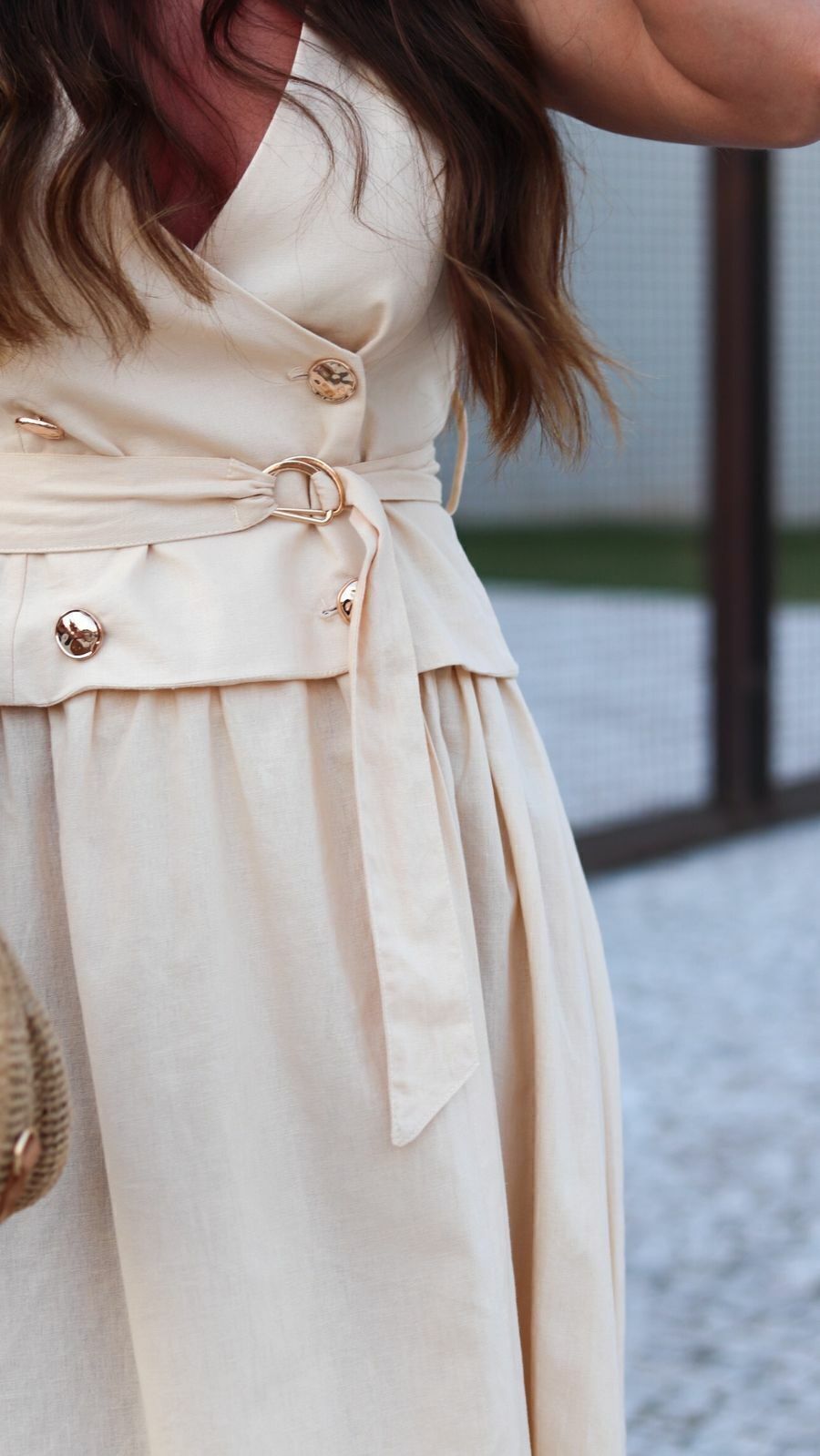 Composição Premium Confeccionado com 55% linho e 45% algodão, garante conforto e um caimento perfeito. Adicione um toque de classe ao seu guarda-roupa com este vestido versátil e atemporal!